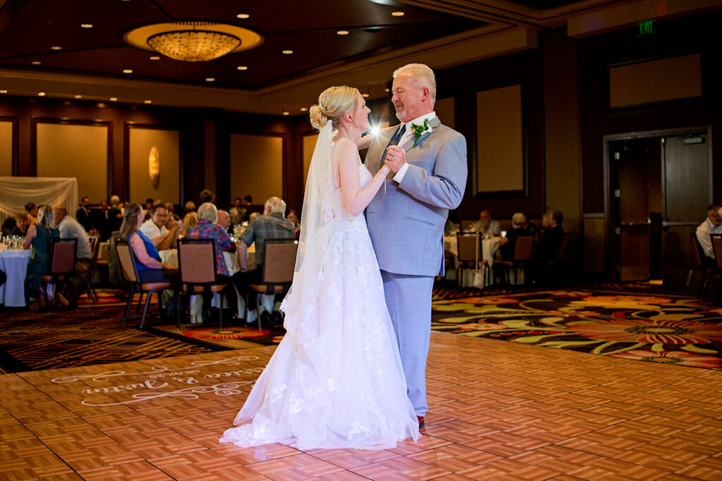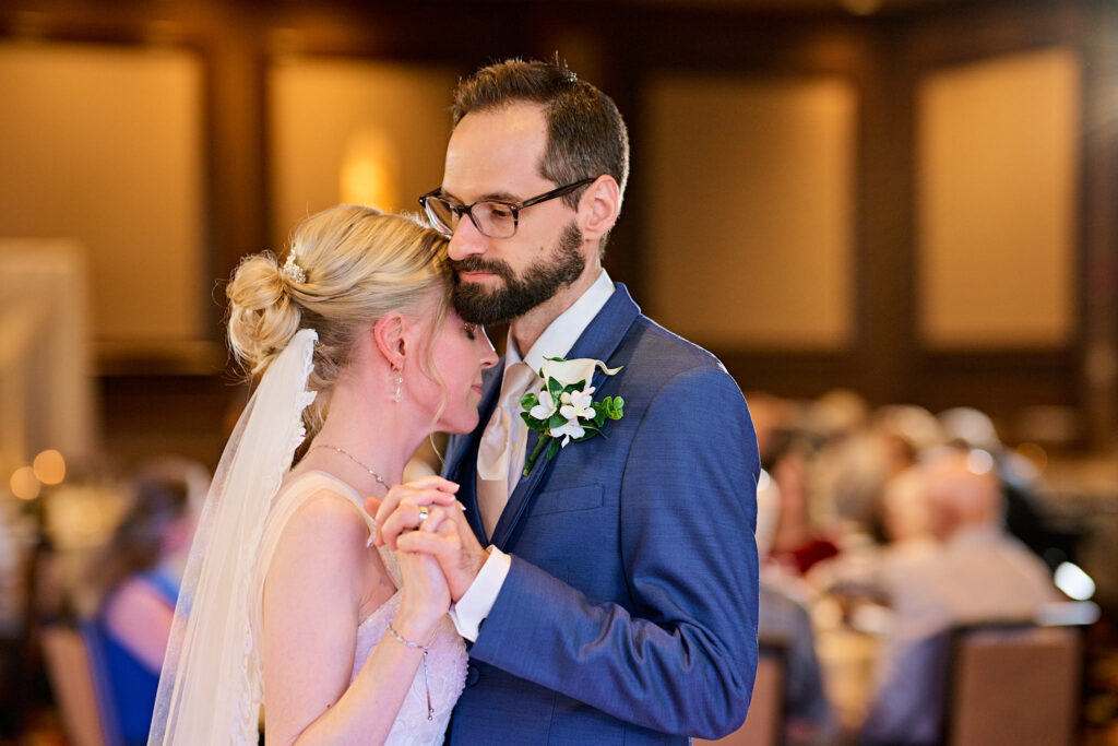 After the ceremony we traveled to the Dubuque Arboretum for family and couple photos. It was the perfect setting for a relaxed beautiful moments with the people that mattered most to the couple. The Arboretum always offer wonderful areas to photograph and to have a moment to relax. The Reception at the Diamond Jo Casino was full of every fun and emotion. One of my favorite moments of the night was capturing Jessica and Justin during their first dance. It was one of those moments where everything else faded away. Just the two of them sharing their special connection in the middle of the room.